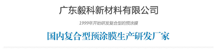 廣東毅科新材料有限公司從1999年開(kāi)始研發(fā)復(fù)合型的預(yù)涂膜,也是國(guó)內(nèi)復(fù)合型預(yù)涂膜生產(chǎn)研發(fā)廠家,十幾年來(lái)我們不斷努力改進(jìn)產(chǎn)品,優(yōu)化產(chǎn)品性能,制造多元化復(fù)合材料產(chǎn)品。公司主營(yíng)產(chǎn)品BOPP預(yù)涂膜、PET預(yù)涂膜、數(shù)碼印刷預(yù)涂膜 ,廣告噴繪熱裱膜,PET地暖復(fù)合材料,產(chǎn)品應(yīng)用于包裝印刷覆膜、辦公用品覆膜,廣告熱裱覆膜、建筑復(fù)合材料、光學(xué)復(fù)合材料等領(lǐng)域 。公司已通過(guò)ISO09001:2008質(zhì)量管理體系認(rèn)證、綠色印刷環(huán)保標(biāo)志認(rèn)證、國(guó)家高新技術(shù)企業(yè)認(rèn)定;EVA型預(yù)涂膜行業(yè)標(biāo)準(zhǔn)制定單位等榮譽(yù),先進(jìn)的ERP系統(tǒng)管理,注重知識(shí)產(chǎn)權(quán)的開(kāi)發(fā)和應(yīng)用,授權(quán)實(shí)用新型專利有多項(xiàng),申請(qǐng)發(fā)明專利多項(xiàng);還擁有一支優(yōu)秀的研發(fā)團(tuán)隊(duì),專業(yè)知識(shí)和技術(shù)經(jīng)驗(yàn)豐富,能為產(chǎn)品的質(zhì)量提供強(qiáng)而有力的技術(shù)支撐。
