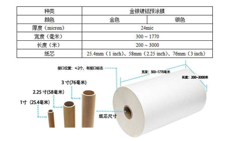 - 種類:金色鍍鋁/銀色鍍鋁